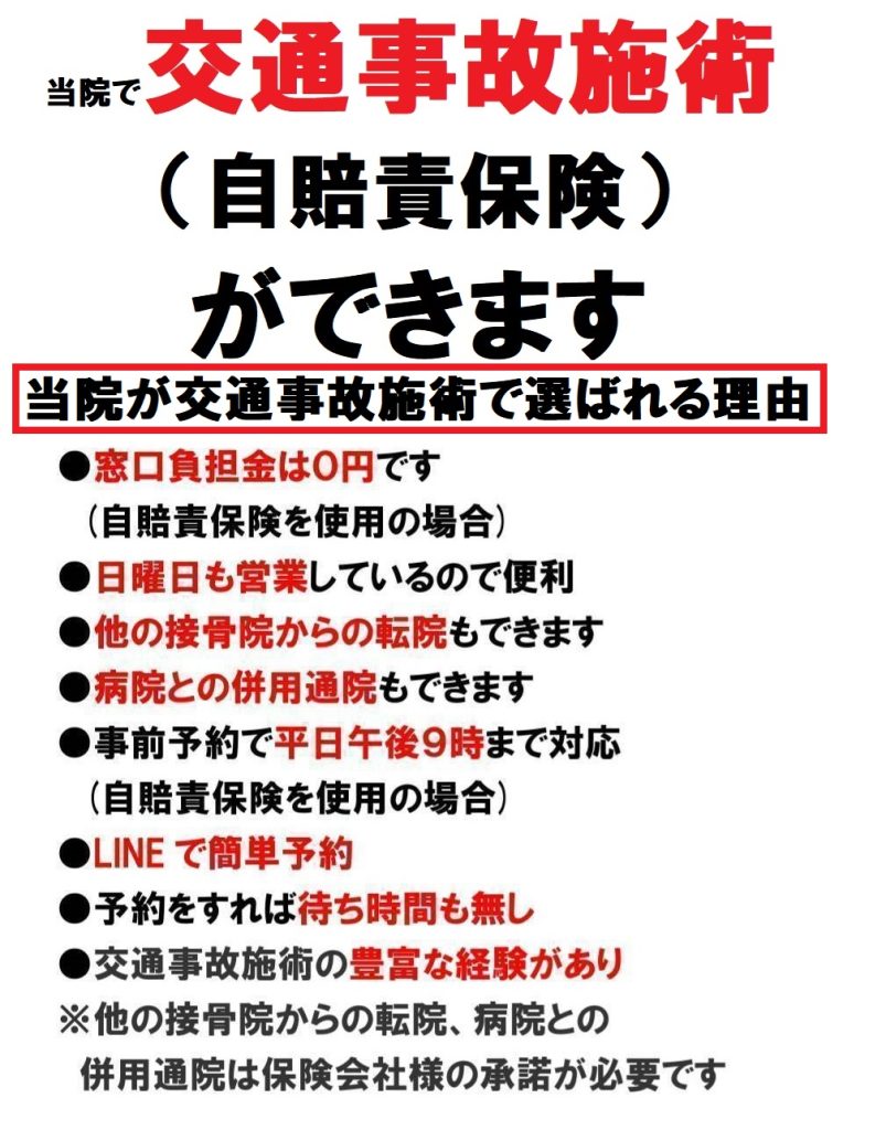 ①交通事故でのむち打ち・腰痛の施術に力を入れていて、多くの実績が有ります
